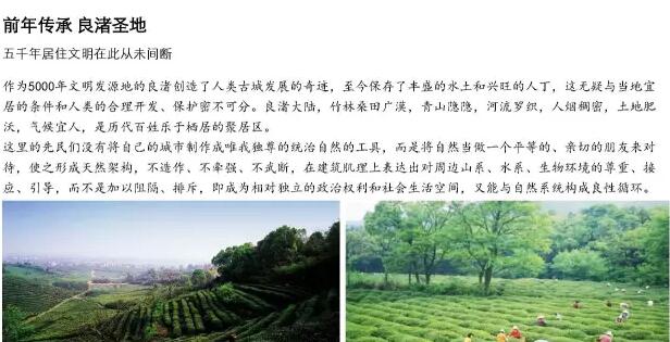 良渚是一塊美麗的福地,我們渴望在這里建設一座低密度、慢生活、桃花源般的夢(mèng)想小鎮。